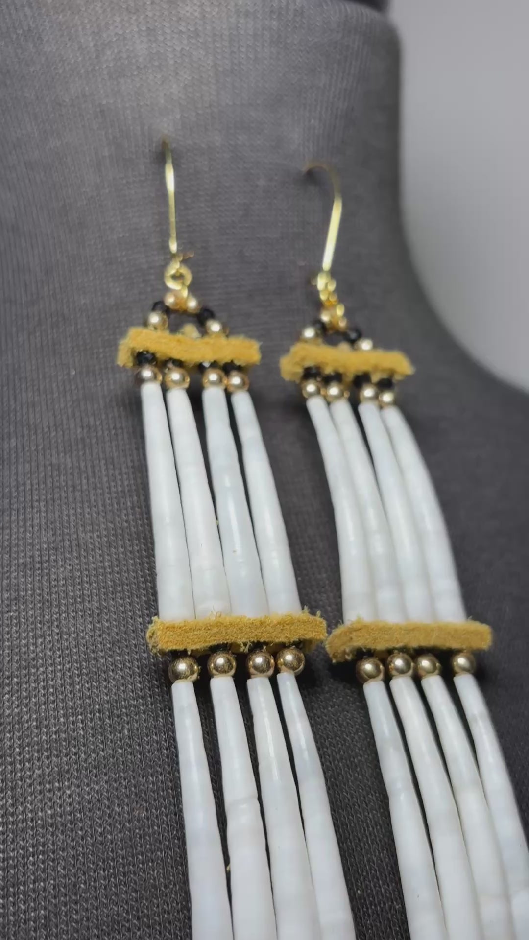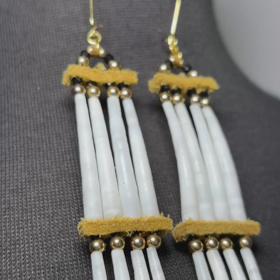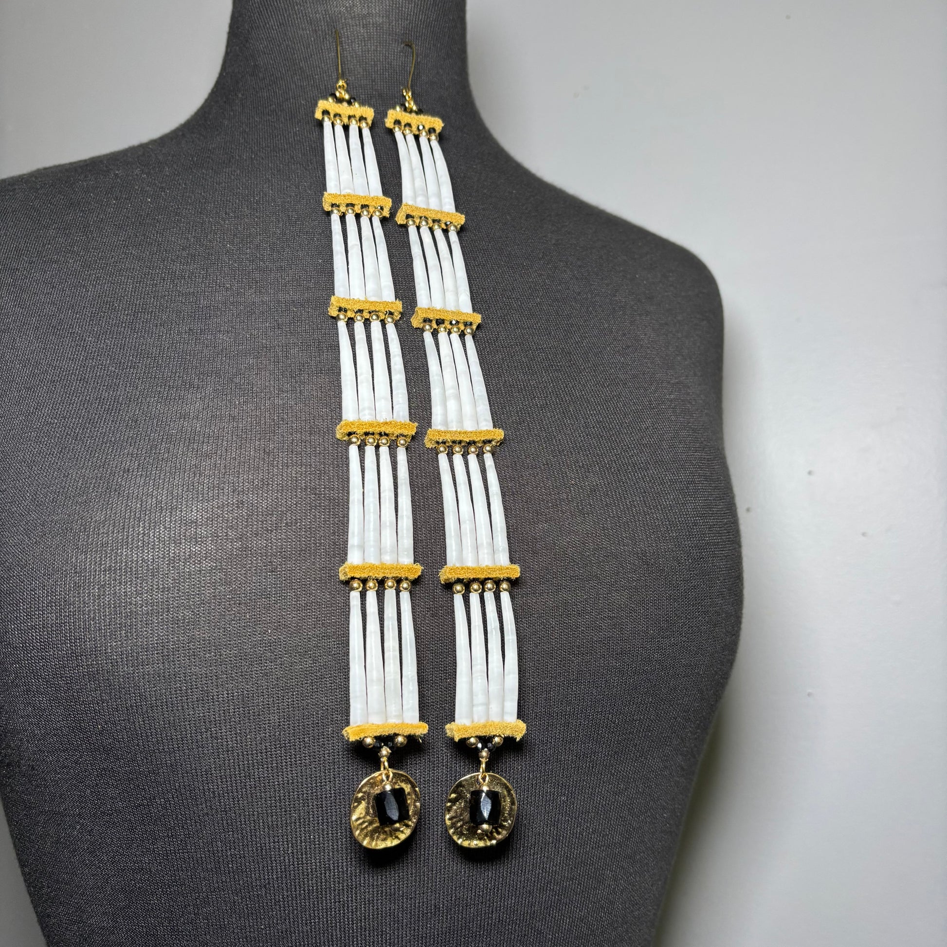 11.25” Trade Bead Ancestral Dentalium Earrings - Black